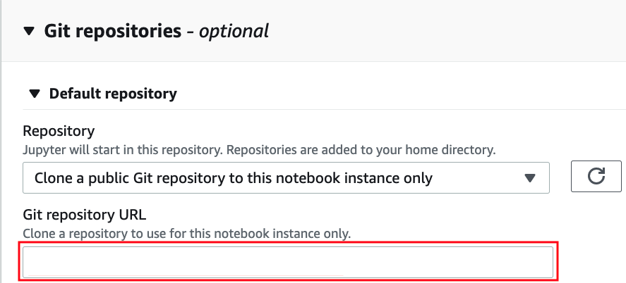 The entire book in the ipynb format for running with SageMaker is available at https://github.com/d2l-ai/d2l-en-sagemaker. We can specify this GitHub repository URL (Figure 23.2.4) to allow SageMaker to clone it when creating the instance.