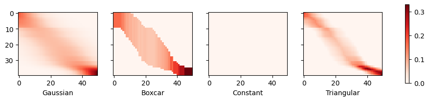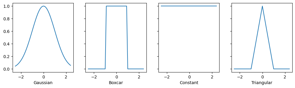 names = ('Gaussian', 'Boxcar', 'Constant', 'Triangular')