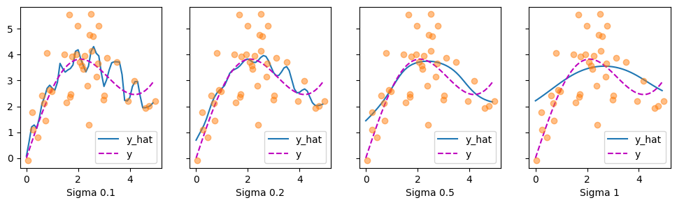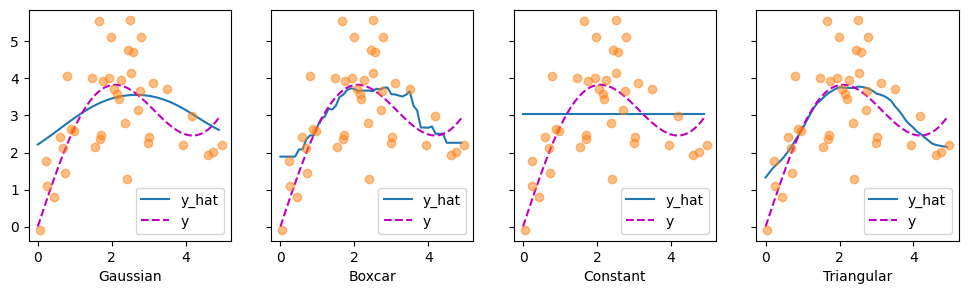 return y_hat, attention_wLet’s have a look at the kind of estimates that the different kernels produce.